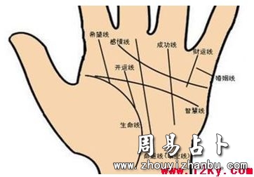 4、命运线 又叫做‘事业线’。从手腕附近朝中指上升的线,影响的是一生运势与事业方面。