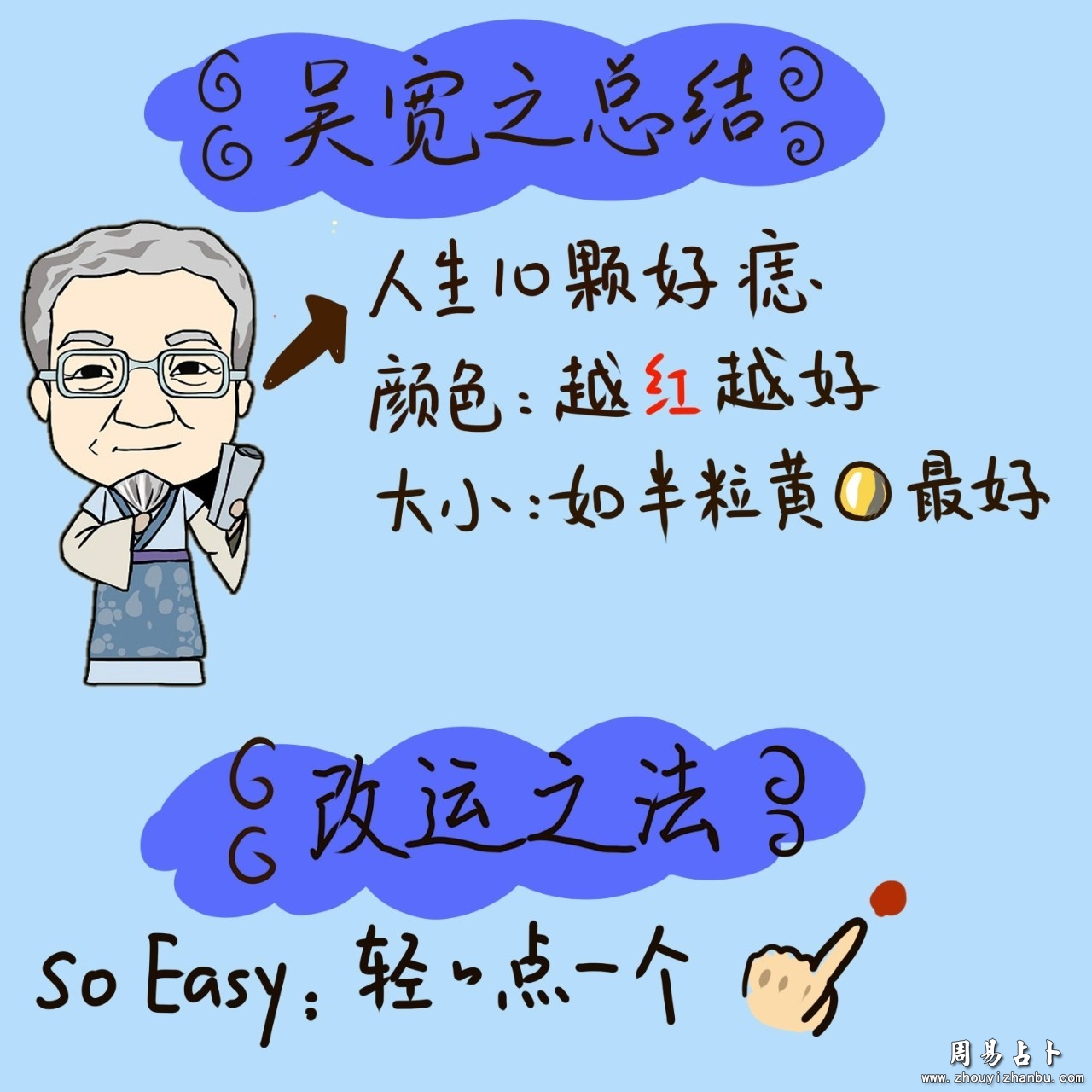 痣的位置与命运图也关系到人的命运的,我们每个人身上都会有大大小小不同的痣,每个位置的痣都是有它不同的含义的,这些痣的存在,关系着你一生的运势。在相术当中,痣的位置与命运图和痣相有很多讲究,除了部位还有隐露程度、色泽,还有痣的大小、凸平等。相理认为,好的痣色应是痣泛润光,色泽纯正的黑痣、红痣和如玉的白痣。“黑如漆、赤如泉,白如玉者,方主大富贵也。”“黑痣其色如墨,赤如朱,善也。”