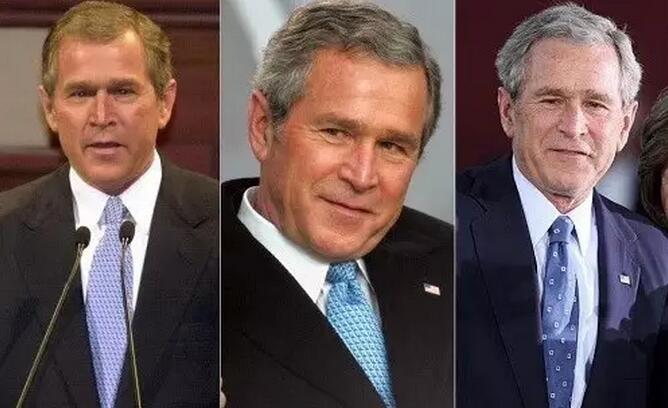 说到这个呢我还想到一个非常有意思例子,小布什,小布什的相呢,他的父母宫就是生的非常好的,他的日月角非常的分明,非常的饱满,所以你看现成的例子,老布什是总统,小布什又接着做了总统,在美国的历史上这也是很少见的。我们接着再看刚刚说到的小布什,他整个相格非常出彩的不仅是父母宫饱满、明润,同时呢小布什的地库也长的好,他的下巴是有点朝前卷,兜兜的,那么这一个形,也跟天庭形成一种很好的呼应。