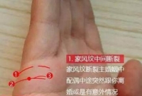 1.家风纹未端开叉者,末端方向是奔向手相内侧,她的家风纹末端也是分叉,只要分叉就代表其人感情方面要经历波折,婚后生活不如意,有离婚的倾向。但是会不会离婚还要看自己的对婚姻的把控2.手相川字掌,事业线明显, ......